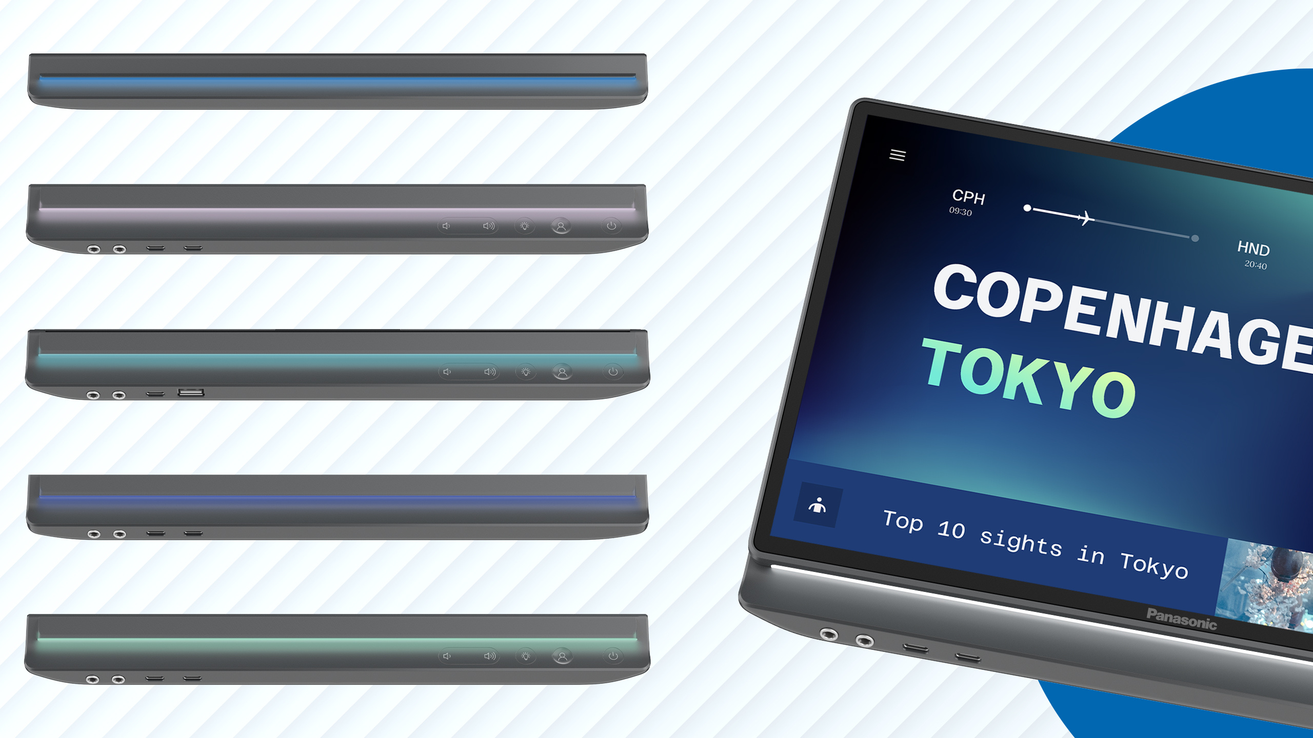 The peripheral bar is a removable, elegant, plug-and-play solution that allows airlines to introduce new power outlets, audio jacks, function buttons, and wireless features like Bluetooth without having to remove the entire seatback screen. It's a key feature of Astrova, Panasonic's newest in-flight entertainment system.